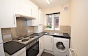 The kitchen includes an electric oven and hob, microwave oven, full-height fridge/freezer, and washing machine/dryer.